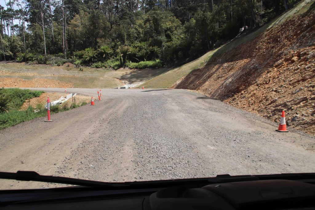 Im Westen Tasmaniens werden wir davon sicher noch mehr zu sehen bekommen. Später wurden wir dann auf der Strasse von anderen Autofahrern angehalten. Ein Motorrad hatte auf bergiger Strecke in einer Kurve einen Abflug gemacht. Ein zufällig vorbeikommendes Auto, das eine Seilwinde hatte, zog das Motorrad den Steilhang hinauf zurück auf die Strasse. Dem Fahrer war wie durch ein Wunder nichts passiert und seine Maschine war offenbar fahrtüchtig geblieben. So läuft also ein Unfall auf Tasmanien ab: alle Auto’s werden angehalten, es gibt keine Polizei und es wird sich erkundigt, ob’s dem Unfallopfer gut geht. Die Stimmung ist ruhig, die Leute quatschen untereinander, aber niemand geht direkt zum Unfall zum Schauen (und niemand machte ein Foto!). Das ist eine wirklich neue Erfahrung. Nachdem wir weiterfahren konnten, kam das verunfallte Motorrad mit verunfalltem Fahrer nach kurzer Zeit wieder von hinten in einem waghalsigen Manöver an uns vorbeigerast. Trotz doppelter Sperrlinie in einer unübersichtlichen Kurve. Der Schwarm Schutzengel hatte sicherlich alle Mühe mitzuhalten.
