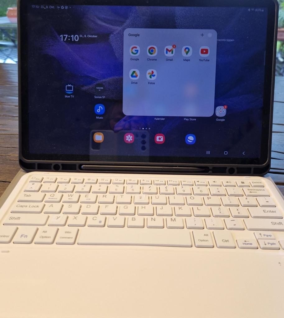 Auch in diesem Urlaub wird es einen Blog direkt von vor Ort geben. Ich stelle mir das als sehr gut möglich vor. Vormittags Wanderungen und hin und wieder nachmittags dann einen neuen Beitrag verfassen, natürlich nur dann, wenn es wirklich was zu schreiben gibt. Dafür habe ich mein Tablet ergänzt durch eine Tastatur. So sieht die neue Kombination aus: