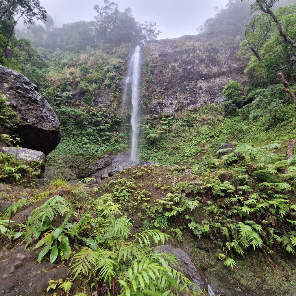 AJ wollte die Stimmung noch hoch halten, nur Thomas war im Jagdfieber und wollte nur mehr so schnell wie möglich beim Wasserfall sein. Mit aller letzter Puste und vollkommen durchnässt kamen wir oben an.