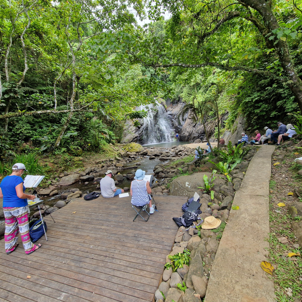 Später am ersten Wasserfall wurden wir erstmal von der dortigen Dorfgemeinschaft abgezockt, allerdings erkennen wir an, dass dadurch wichtige Projekte in diesen Dörfern finanziert werden (sehr komplizierte Prozedur: erst Anmeldung, dann Ticket kaufen etwas weiter im Dorf, zufälligerweise in einem Haus, in dem viel Kunsthandwerk angeboten wird (das meiste wahrscheinlich made in China…); man muss zuerst die verschiedenen Stände besichtigen, dann darf man das Ticket kaufen; dann zurück zur Anmeldestelle, dort das Ticket abgeben, nun hat man Zugang zum Wasserfall in ca. 5 Gehminuten).