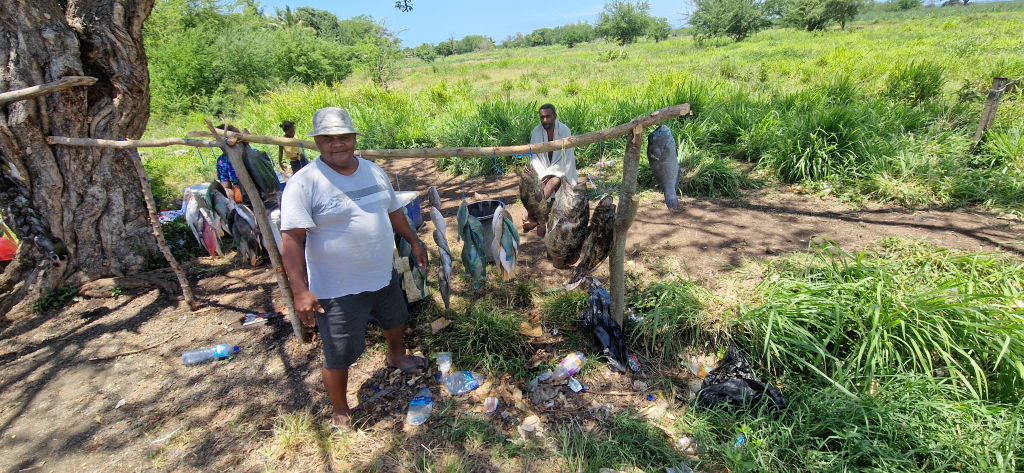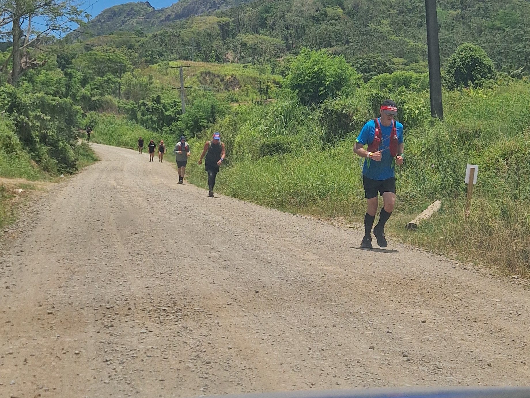 Das gibt es auf allen grossen Strassen (eigentlich gibt es nur 2 grosse (asphalierte) Strassen auf Viti Levu: die Kings Road im Norden der Insel und die Queens Road im Süden der Insel): Stände mit Früchten, Fischen, Gebackenem, Getränken und allem möglichen anderen. Hier hatte wohl der dickste Fisch die grössten Fische.Strassenszene in Tavua.Eine Szene beim Kaffee trinken in Ba. Die geographische Distanz zwischen den beiden Aufnahmen ist 20 km. Wie so häufig auf Fidschi fühlen wir uns als Grenzgänger zwischen der 1. und der 3. Welt, der Gegenwart und der Vergangenheit. Die Unterschiede hier sind riesig.Wir fuhren wieder mal mit Google Maps und das System schickte uns über den Strand (dort waren aber auch schon andere Autos). Natürlich gab es hier kein Strassenschild, Maps nannte diesen Abschnitt „Beach Road“. Recht kreativ für ein Navigationssystem 😎Von Nadi aus waren wir noch im Botanischen Garten (Garden of the Sleeping Giant). Es war ein sehr kleiner, sehr liebevoll gepflegter und gestalteter Garten mit vielen Orchideen.Diese 3 Figuren werden Tree Huger genannt und sollen wohl auffordern, das selbe zu tun wie die Figuren.Nach dem Besuch des Botanischen Gartens fuhren wir noch in Richtung Mud Pools und hier waren plötzlich, bei über 30 Grad im Schatten, recht viele Leute laufend unterwegs. Wir fanden raus, dass das die Spartan Championship sind. Auf Fidschi findet der einzige dieser Wettbewerbe auf der Südhalbkugel statt. Alle anderen Wettbewerbe dieses Sportevents finden auf der Nordhalbkugel statt. Es gibt mehrere Disziplinen, Laufen zwischen 5 und 50 km mit jeweils einer Anzahl von Kletter-Hinternissen (ca. 20 bis 60), die man zusätzlich überwinden muss.
