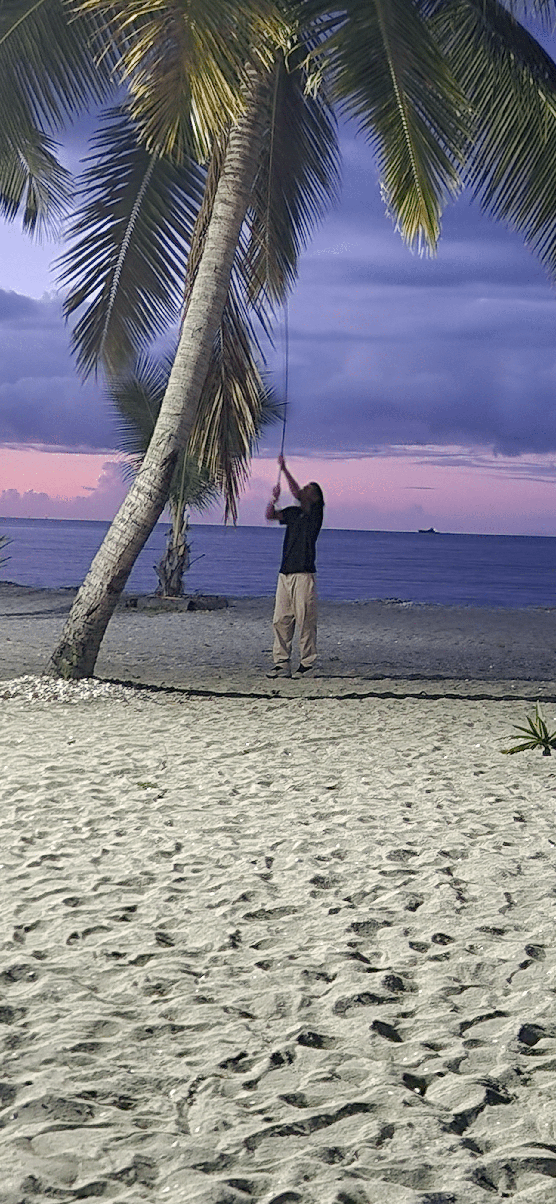 Die letzten 3 Nächte in Nadi waren wir im Club Fiji Hotel. Es war einfach, hatte jedoch etwas wichtiges: direkten Strandzugang. Und den haben wir morgens und abends genutzt. Hier 2 schöne Szenen, die beide mit Kokosnüssen zu tun haben.