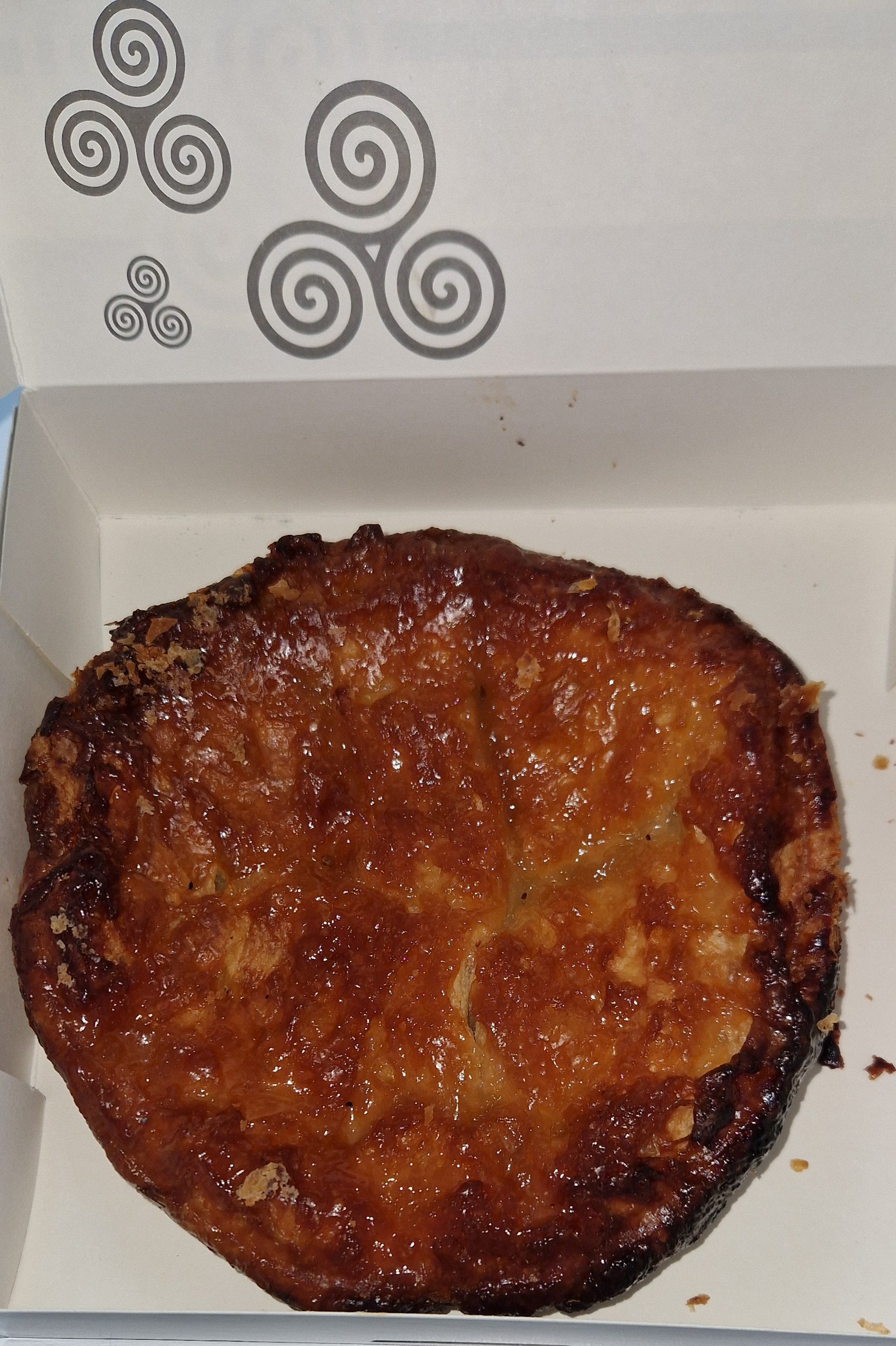 Der nächste Tag war als Regen- und Windtag vorhergesagt – und genau so war es ! Also konnten wir uns mit dem Frühstück ein bisschen Zeit lassen und Thomas brachte eine bretonische Delikatesse vom Bäcker mit: Kouign-amann (gesprochen Ku:n – jamann – oder ungefähr so)