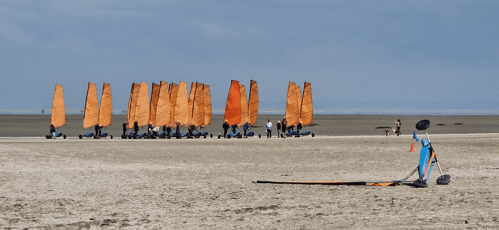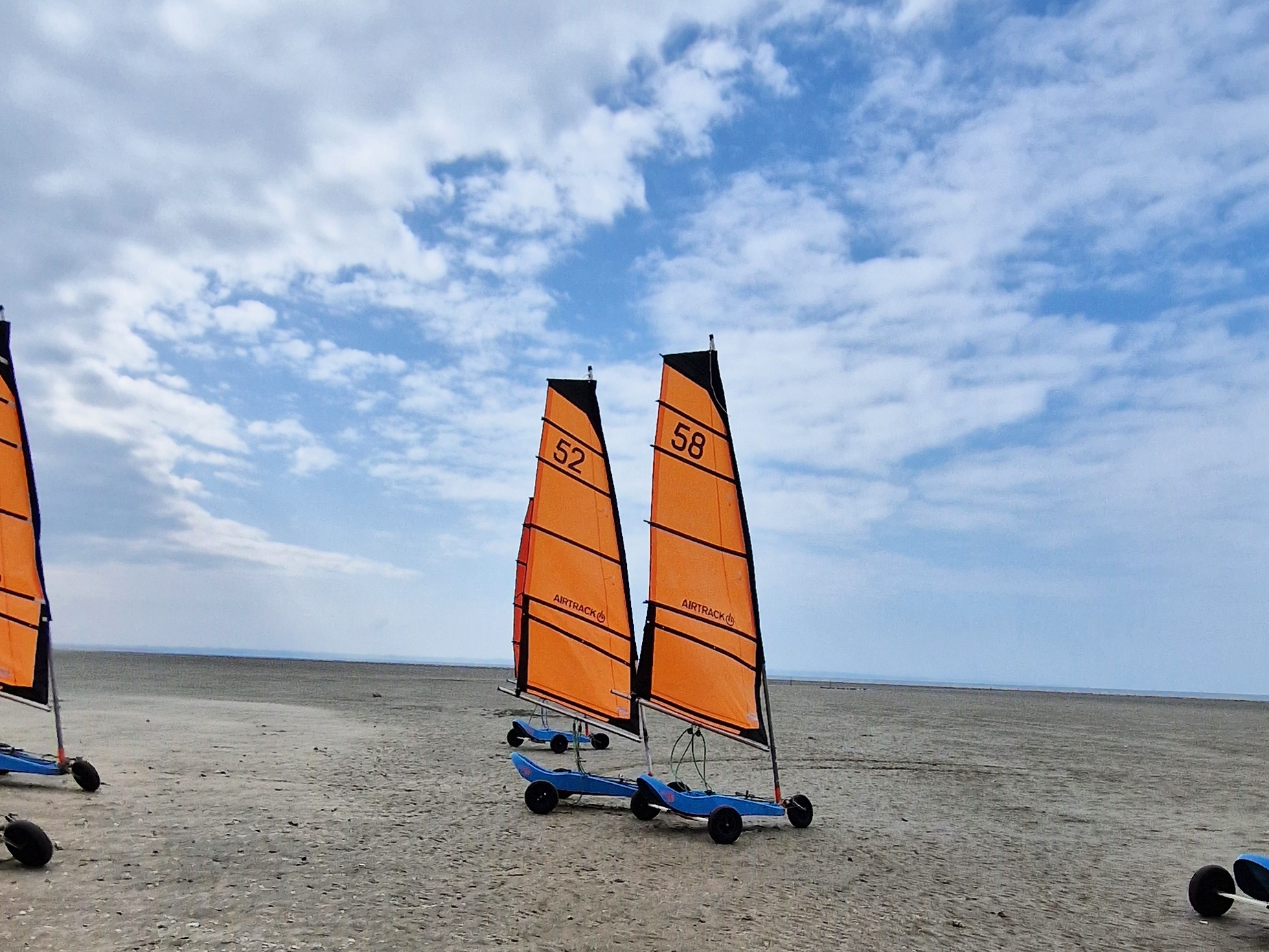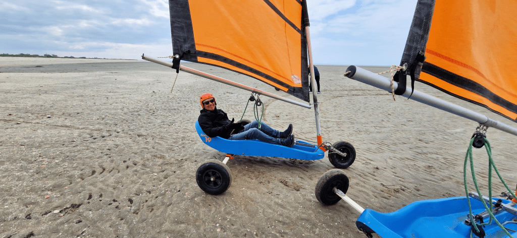 Dann beobachteten wir die erste Gruppe vom Sandyachting, um von ihnen zu lernen. Einerseits freute ich mich auf diese Unternehmung, auf der anderen Seite bin ich bisher nicht mit übermässigen Begabungen für Windsportarten aufgefallen. In der Vergangenheit durfte ich nach einem einwöchigen Kurs im Kiten nicht auf’s Wasser, da es für mich viel zu starken Wind hatte und ich irgendwann innerhalb dieser Woche mit einem Bauchplatscher auf’s Wasser aus einer Höhe von ca. 2 Metern (gefühlt 10 Meter) aufgrund einer Fahlmanipulation des Kites aufgefallen bin 😖. Tja, ich hatte Respekt !