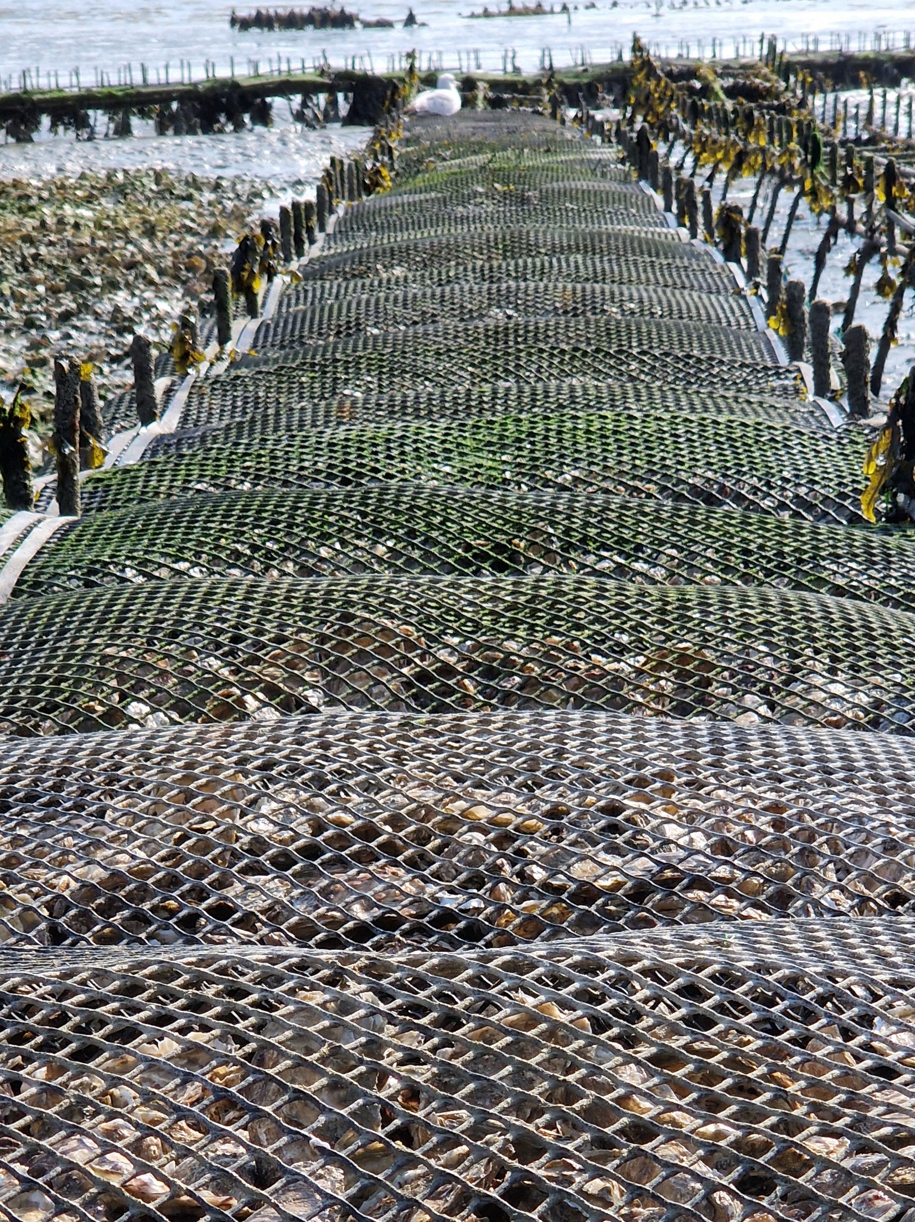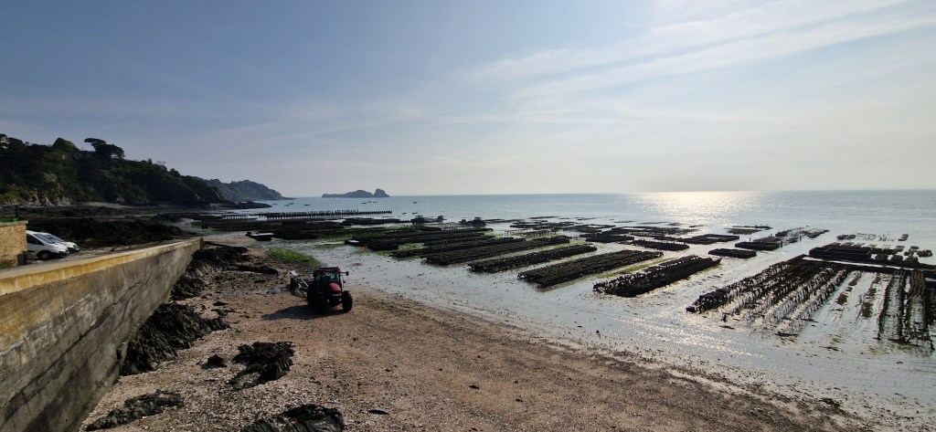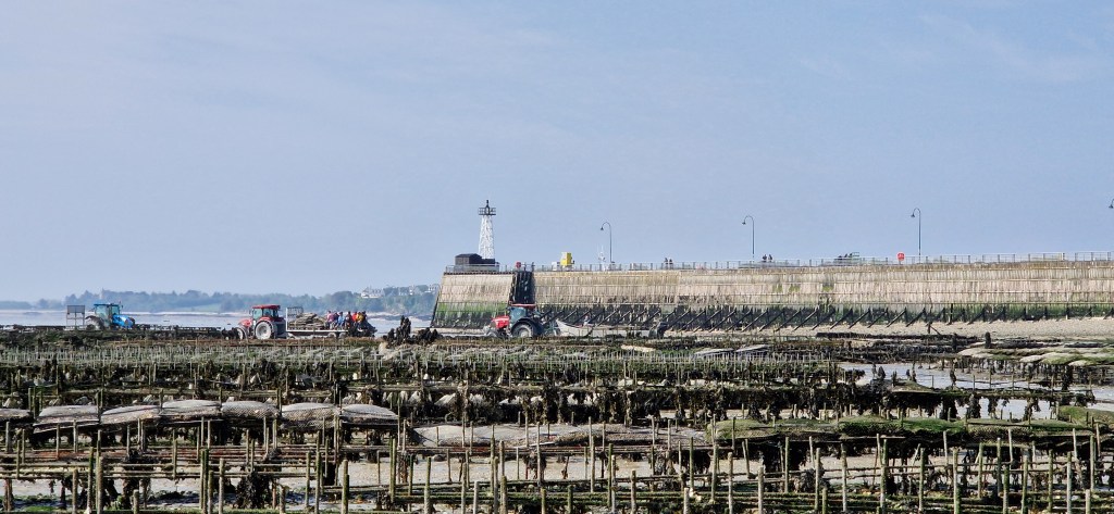 Wir sehen auch noch lange nicht alle Austernbänke, die, die im Meer stehen, sind immer noch vom Wasser bedeckt.
