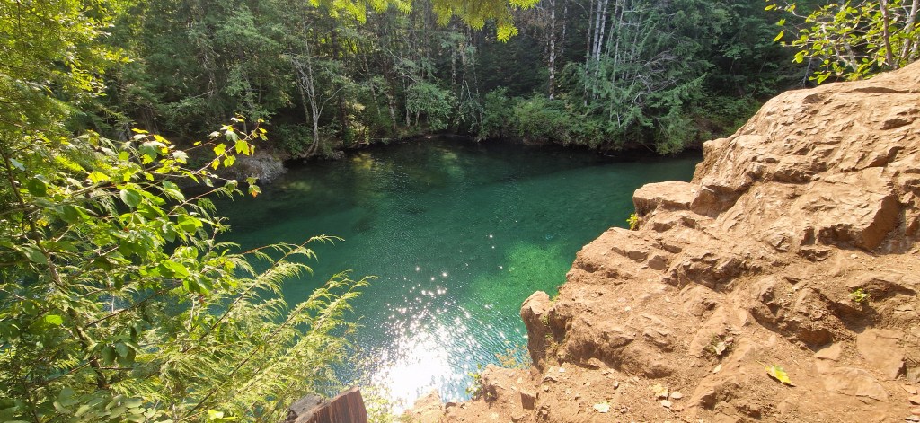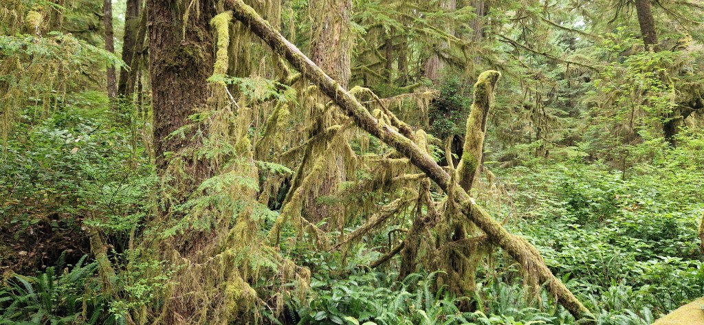 Zwei andere Rundwege führten durch dichten Regenwald. Mit tropischem Regenwald haben diese Wälder natürlich nicht viel zu tun. Sie werden durch riesige Zedern und Tannen wie die Hemlocktanne geprägt. In der unteren Schicht wachsen kleinere Farne und häufig auch Blaubeeren.