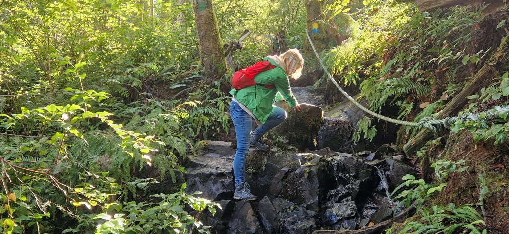 Am ersten Tag nach Ankunft haben wir die Umgebung zu Fuss erkundet und eine Tour in den angrenzenden Regenwald auf steilen Hängen gemacht.